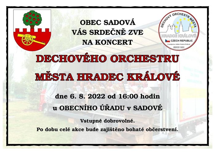 Úvod > Dění v obci > Novinky > POZVÁNÍ Dechovka a letní kino Sadová 6.8.2022