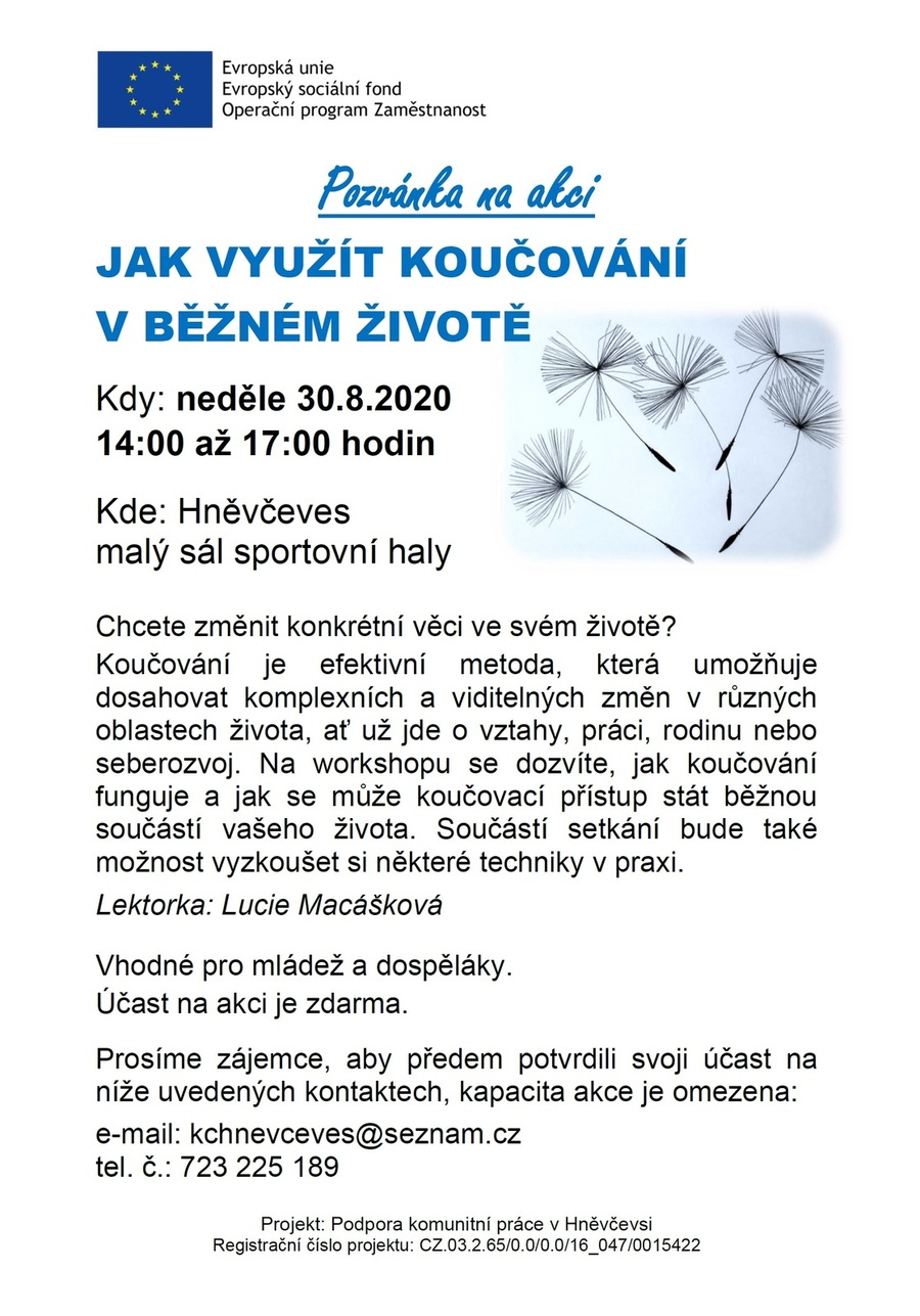 Pozvánka - jak využít koučování v běžném životě -Hněvčeves 30.8.2020