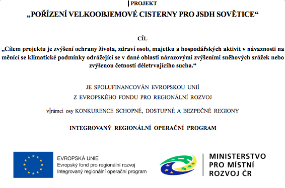 „POŘÍZENÍ VELKOOBJEMOVÉ CISTERNY PRO JSDH SOVĚTICE“