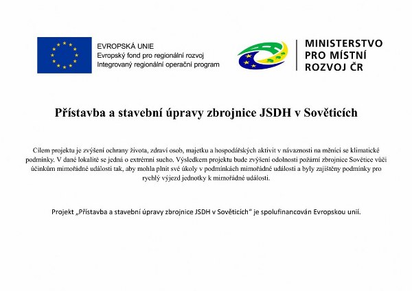 Úvod > Obecní úřad > Dotace > Přístavba a stavební úpravy zbrojnice JSDH v Sověticích