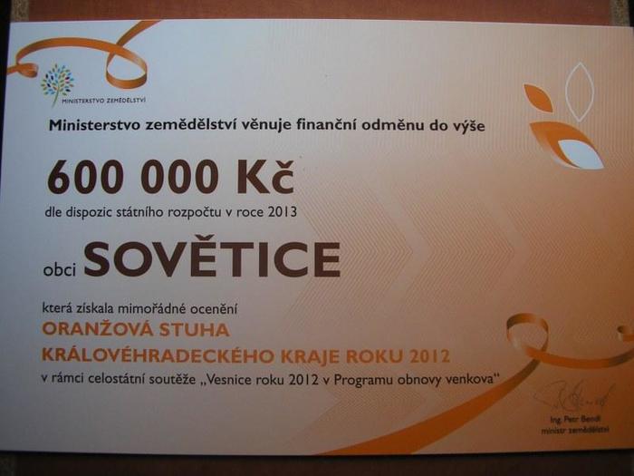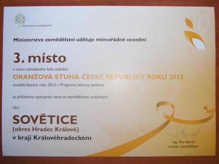 Právě proto je 3.místo v celostátním kole pro obec Sovětice obrovským oceněním.